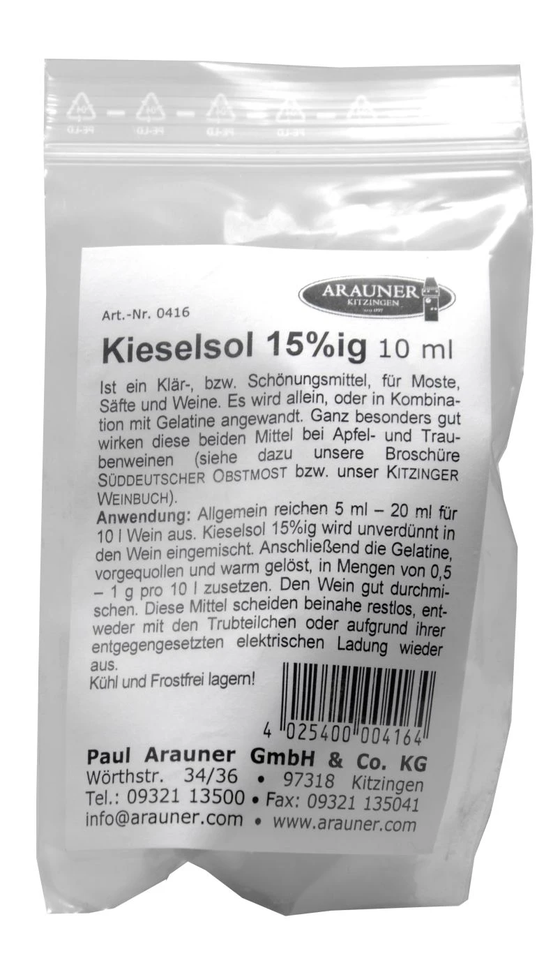 Deinen selbsthergestellten Wein kannst du ganz einfach mit dem Kieselsol von Kitzinger aufhübschen. Trübungen werden beseitigt und auch der Geschmack kann sich dadurch verbessern.