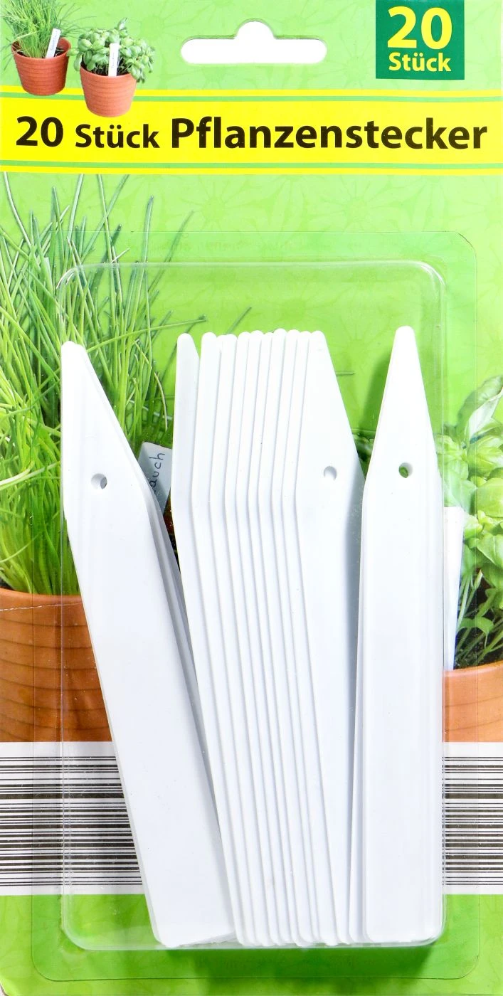Mit den Pflanzensteckern kannst du Ordnung schaffen. Schreibe den Namen mit einem Filzstift auf die Fläche und stecke ihn in die Erde. Nun verwechselst du keine Namen oder Pflanzensorten mehr.