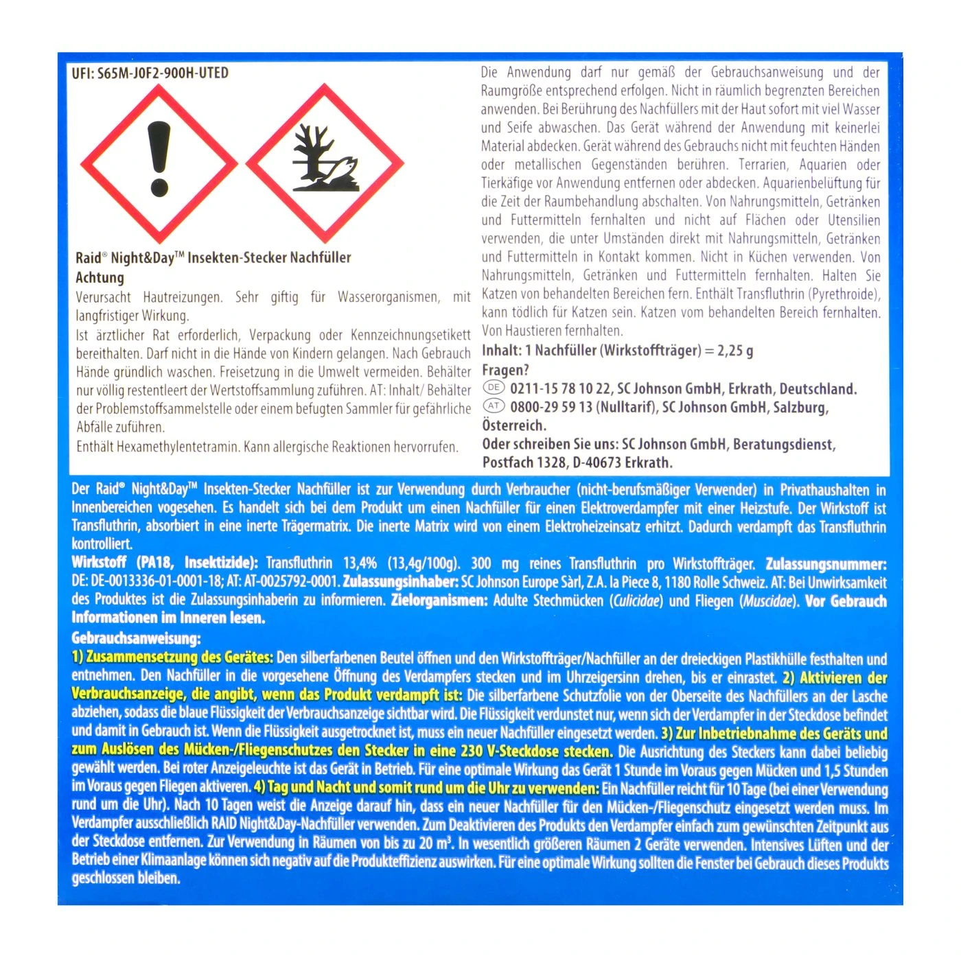 Von Raid gibt es einen Night & Day Insektenstecker, der schnell und geruchslos auf den ganzen Raum (bis zu 30m²) wirkt.